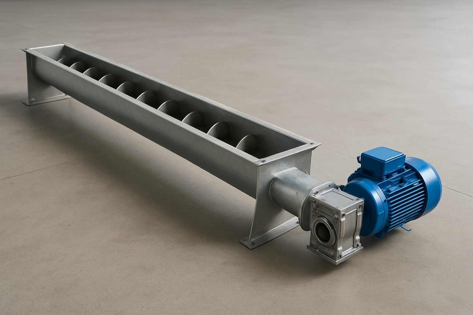 Screw Conveyors from Flextrack are a reliable and cost-effective solution for moving bulk materials efficiently across horizontal or inclined paths. These conveyors consist of a rotating helical screw blade (flighting) housed inside a tubular or U-shaped trough, which transports material from one part of the process to another by rotation.